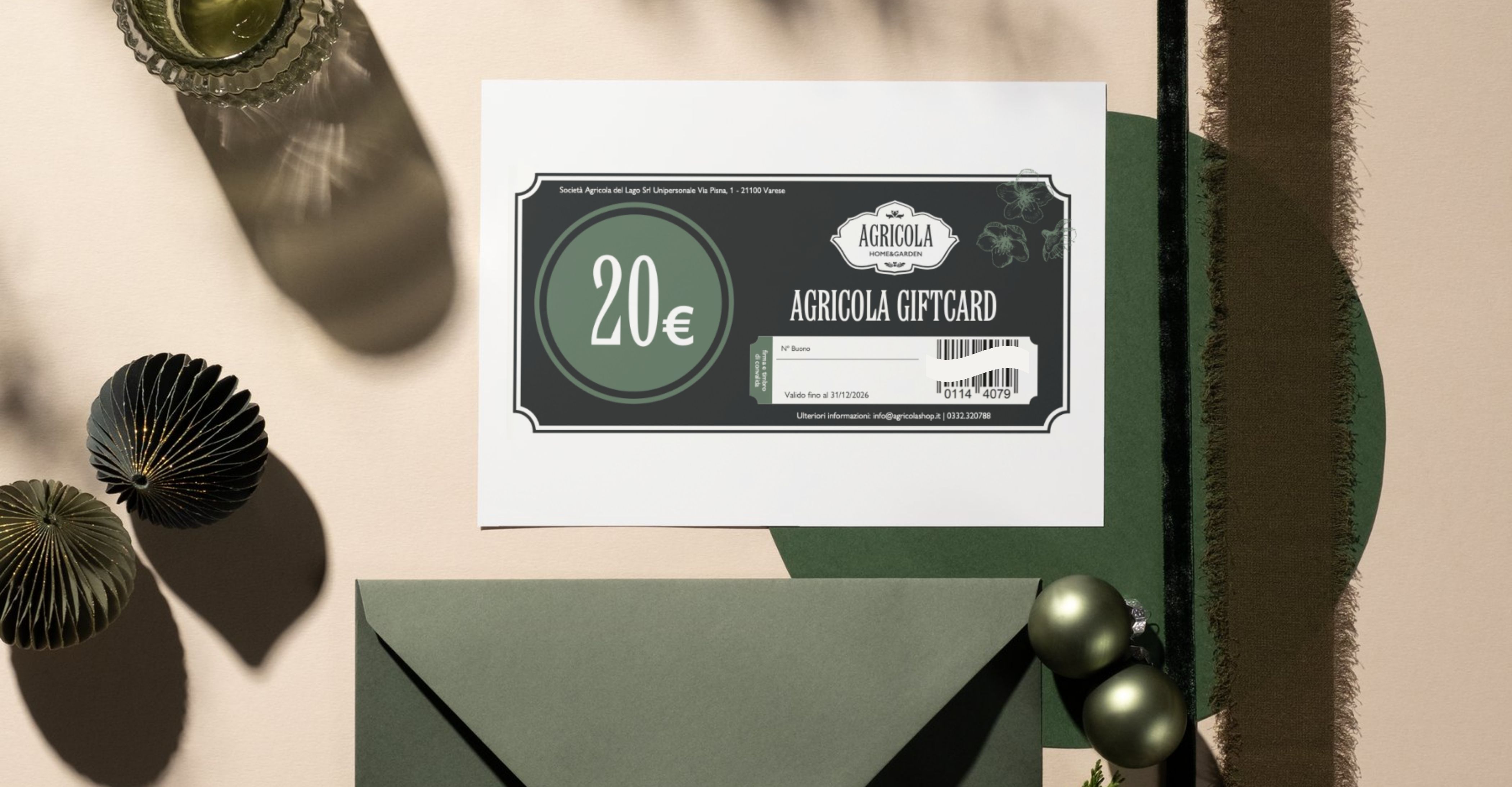 Agricola Home & Garden è anche un punto di riferimento per home decor e decorazioni stagionali. La Gift Card può essere spesa per: